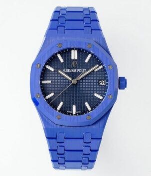 Royal Oak 15500 Blue Ceramic APSF 1:1 Best Edition Blue Dial On Blue Ceramic Bracelet SA4302 Super Clone
