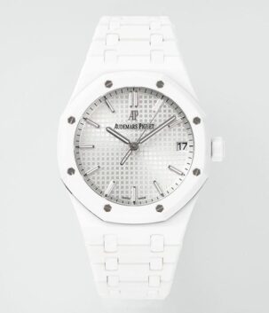Royal Oak 15500 White Ceramic APSF 1:1 Best Edition Silver Dial On White Ceramic Bracelet SA4302 Super Clone