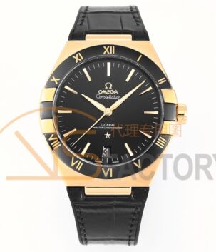 Constellation 41mm YG/Black Ceramic Bezel VSF 1:1 Best Edition Black Dial on Black Gummy Strap A8900