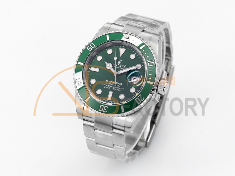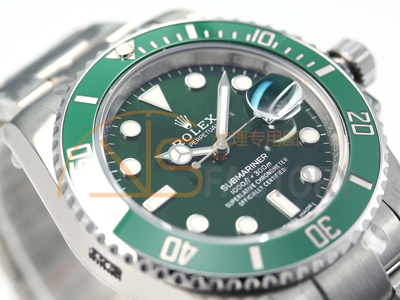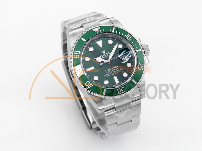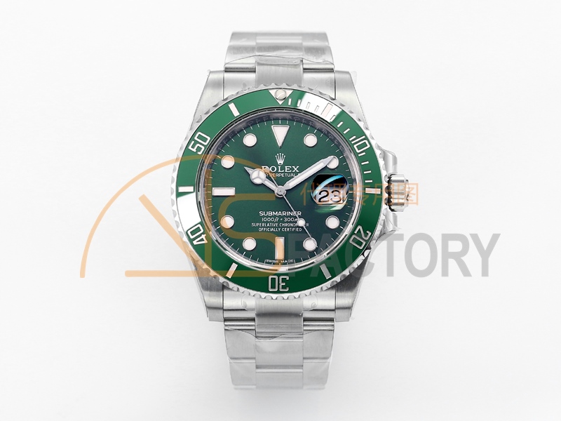 Bezel: Uni-directional rotating green ceramic bezel, latest Clean v3 green bezel