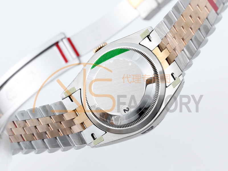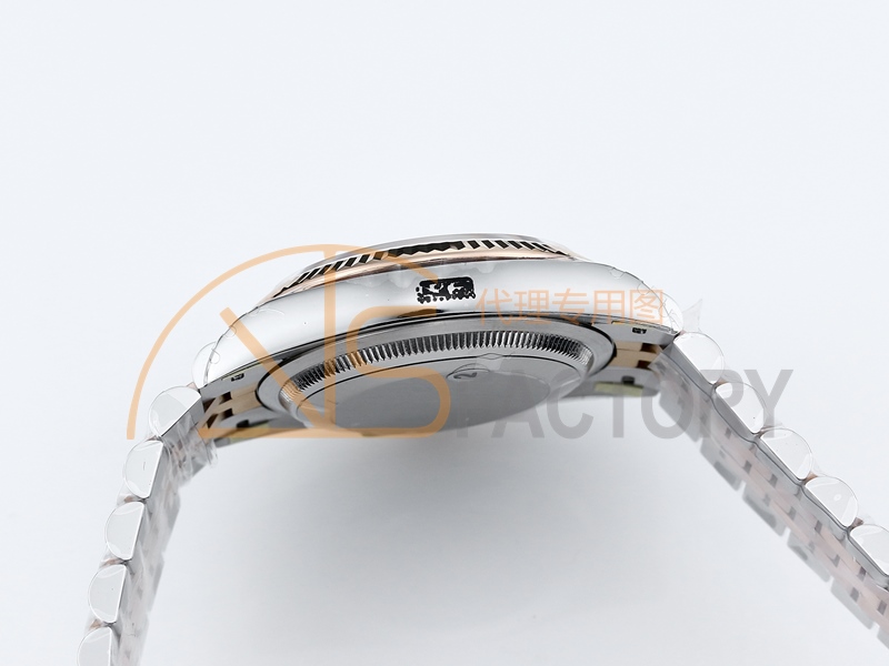 Strap: 904L stainless steel bracelet with 18k rose gold plated middle links