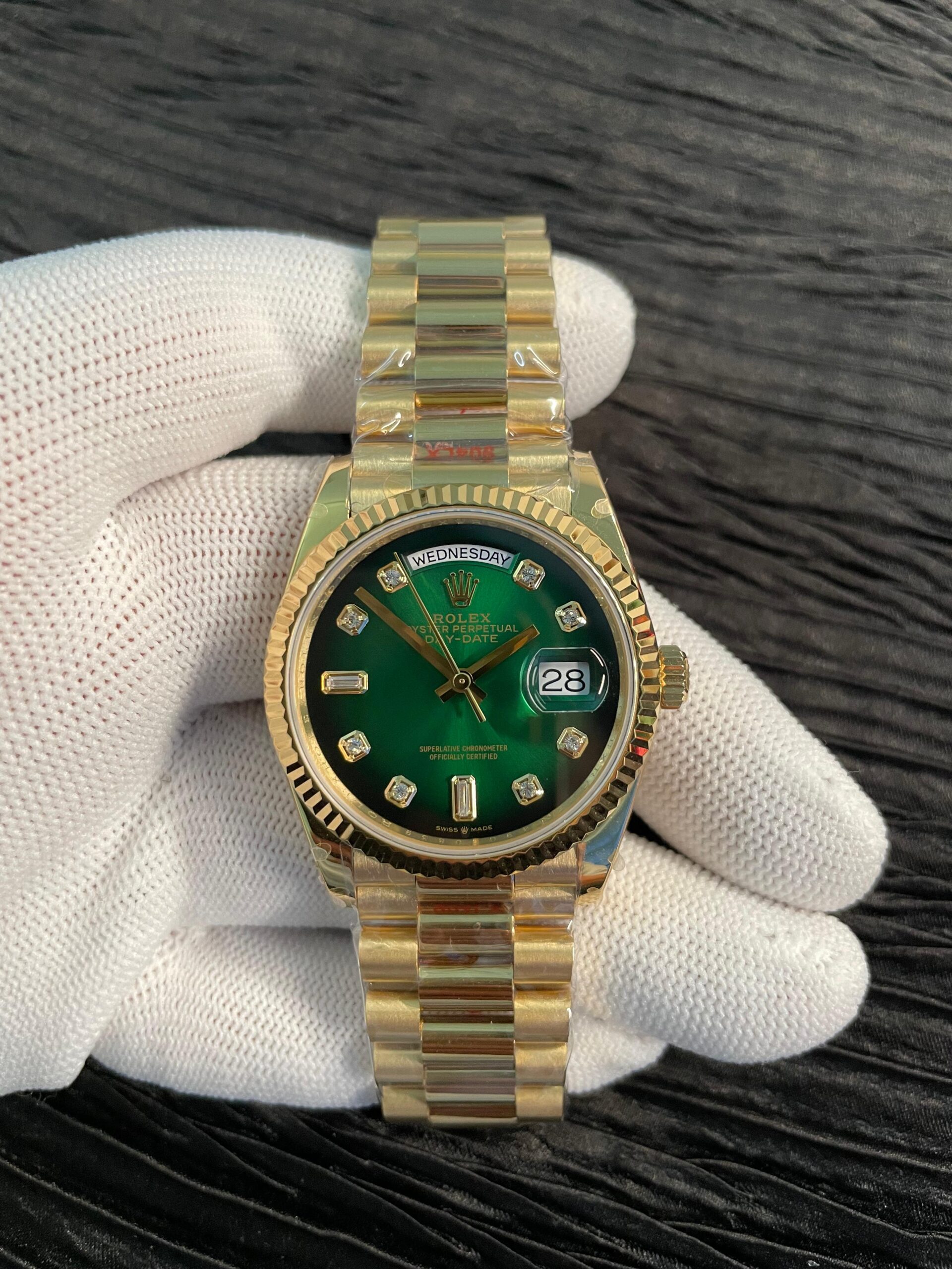 Be the first to review “Day 128238 Gain Weight YG QF 1:1 Best Edition Green Dial Roman Markers on YG President Bracelet”