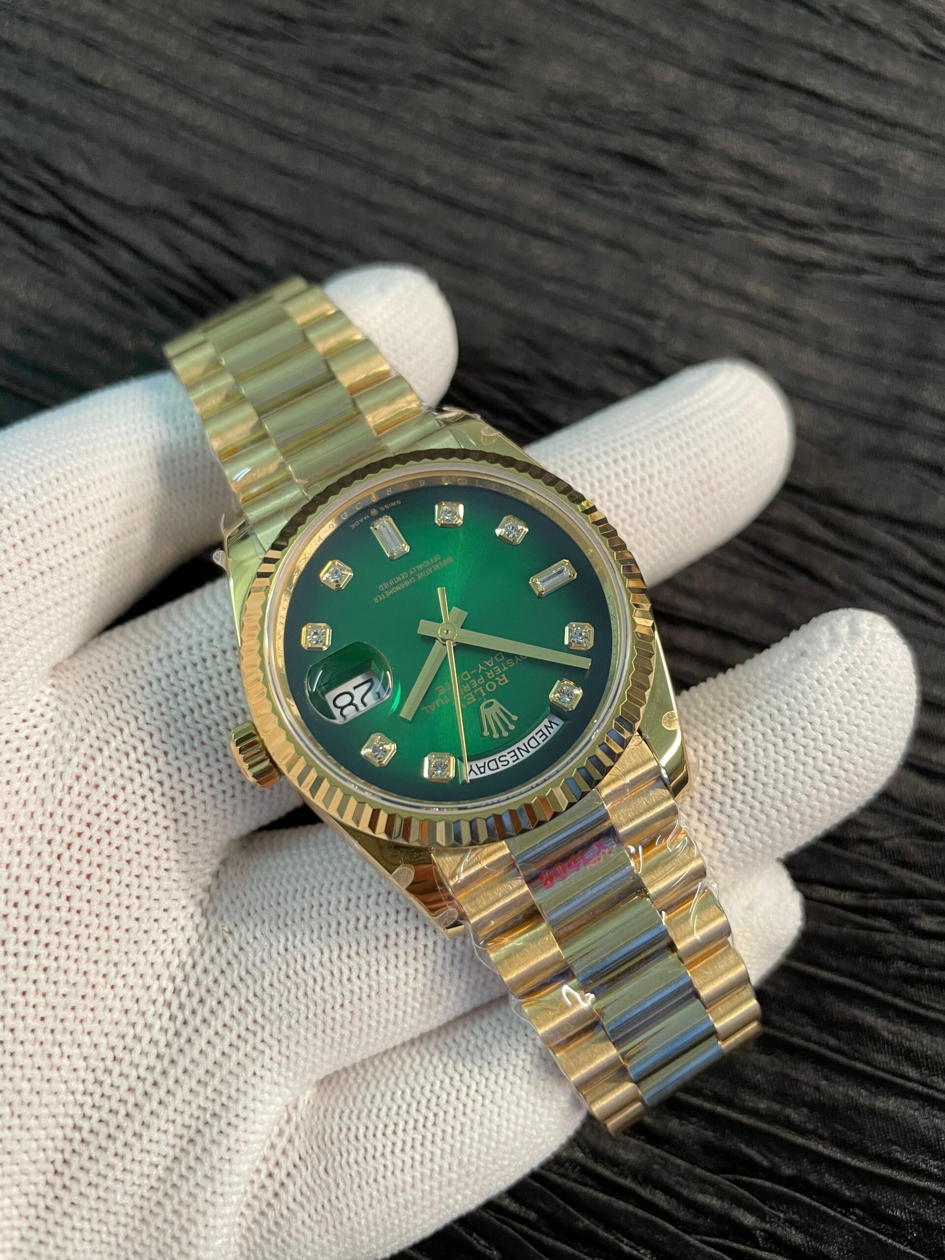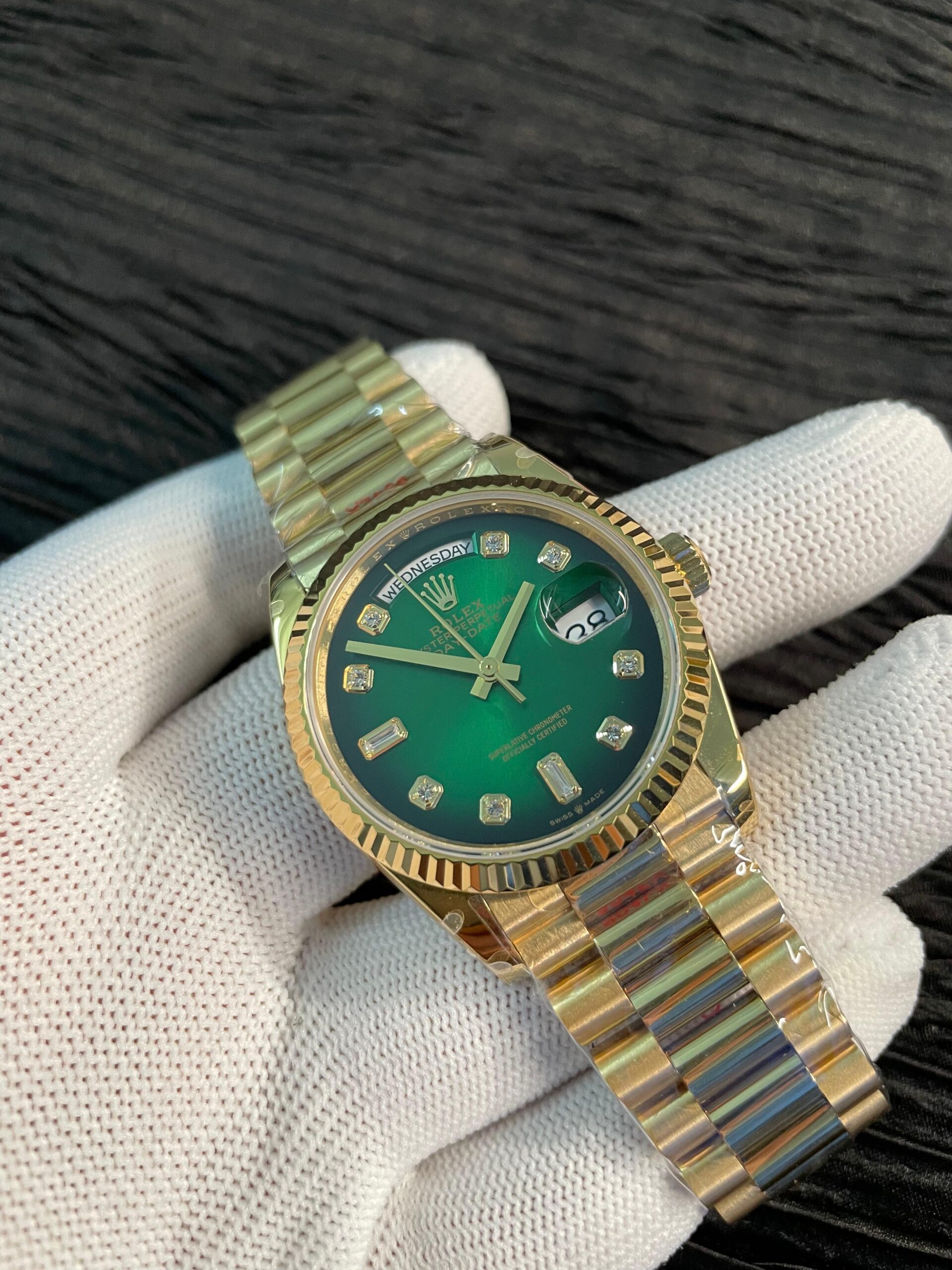 Day 128238 Gain Weight YG QF 1:1 Best Edition Green Dial Roman Markers on YG President Bracelet