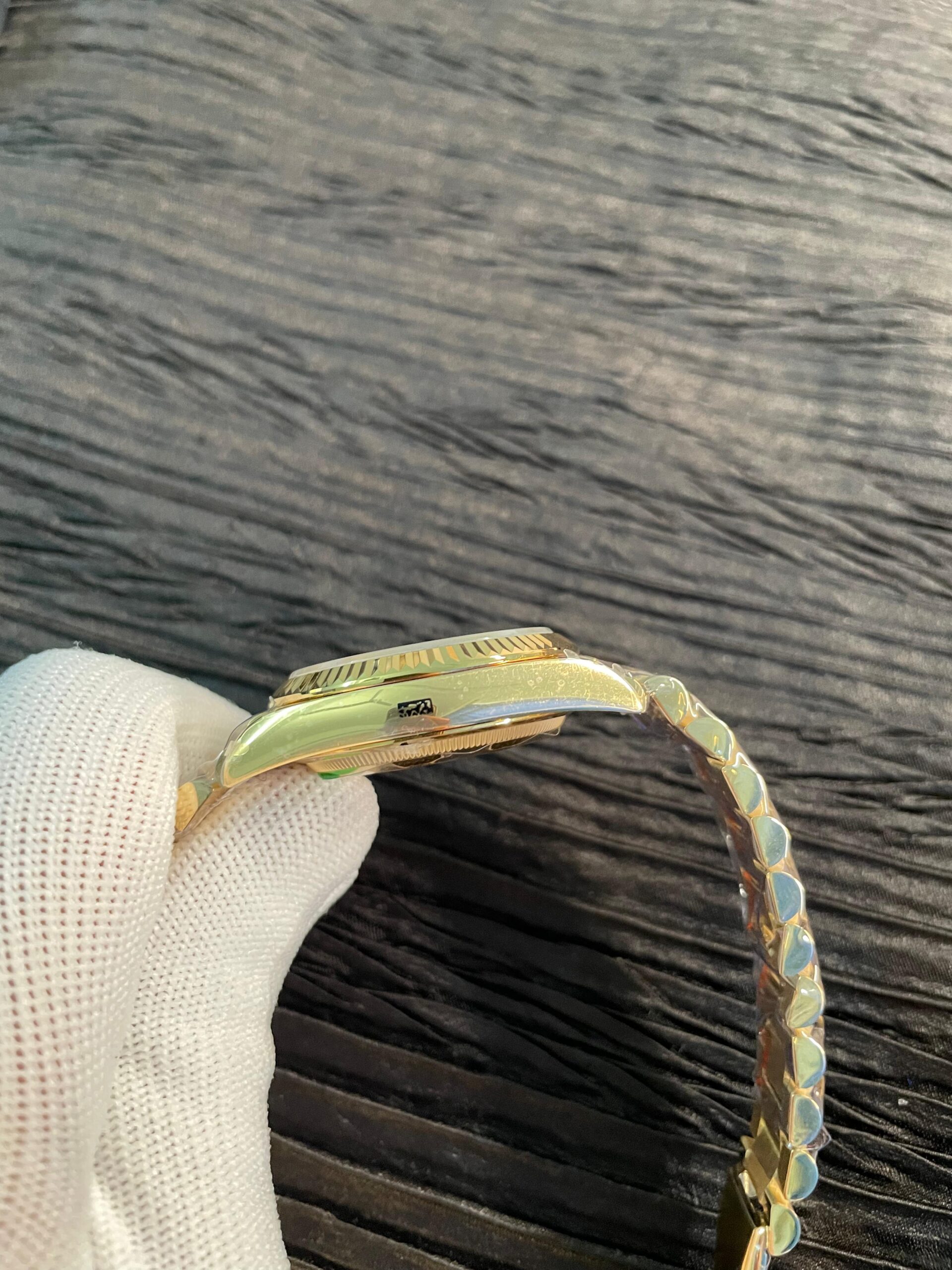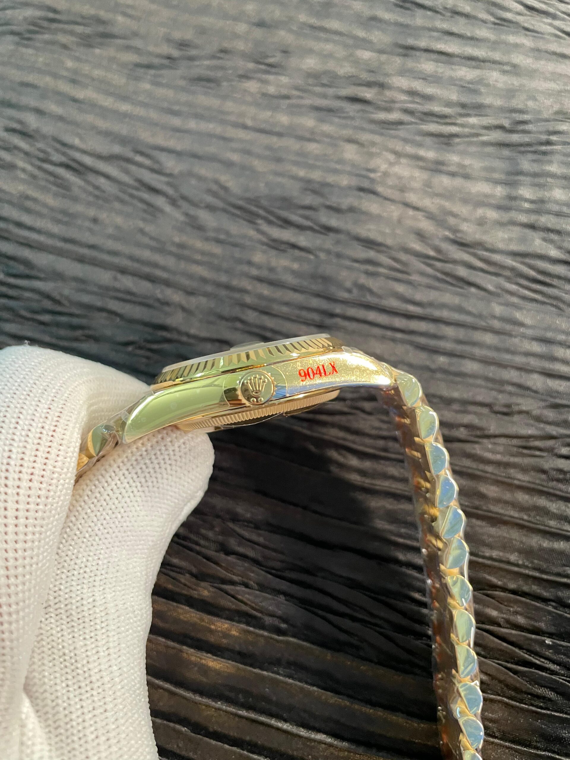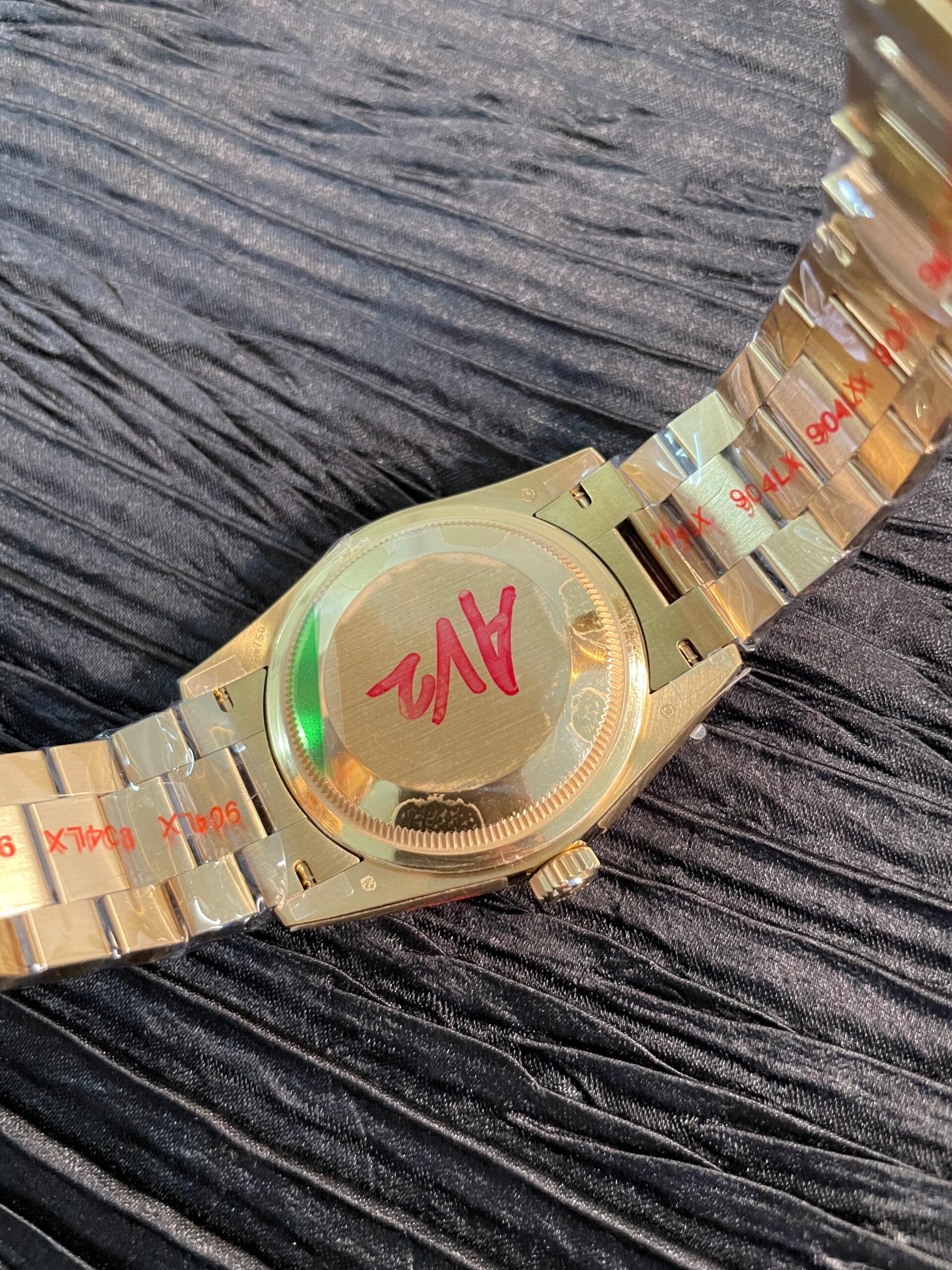 This QF DayDate version not only uses the Gained Weight of metal, but the A2836 version also includes additional tungsten in the caseback and container ring, making the watch weigh around 160g