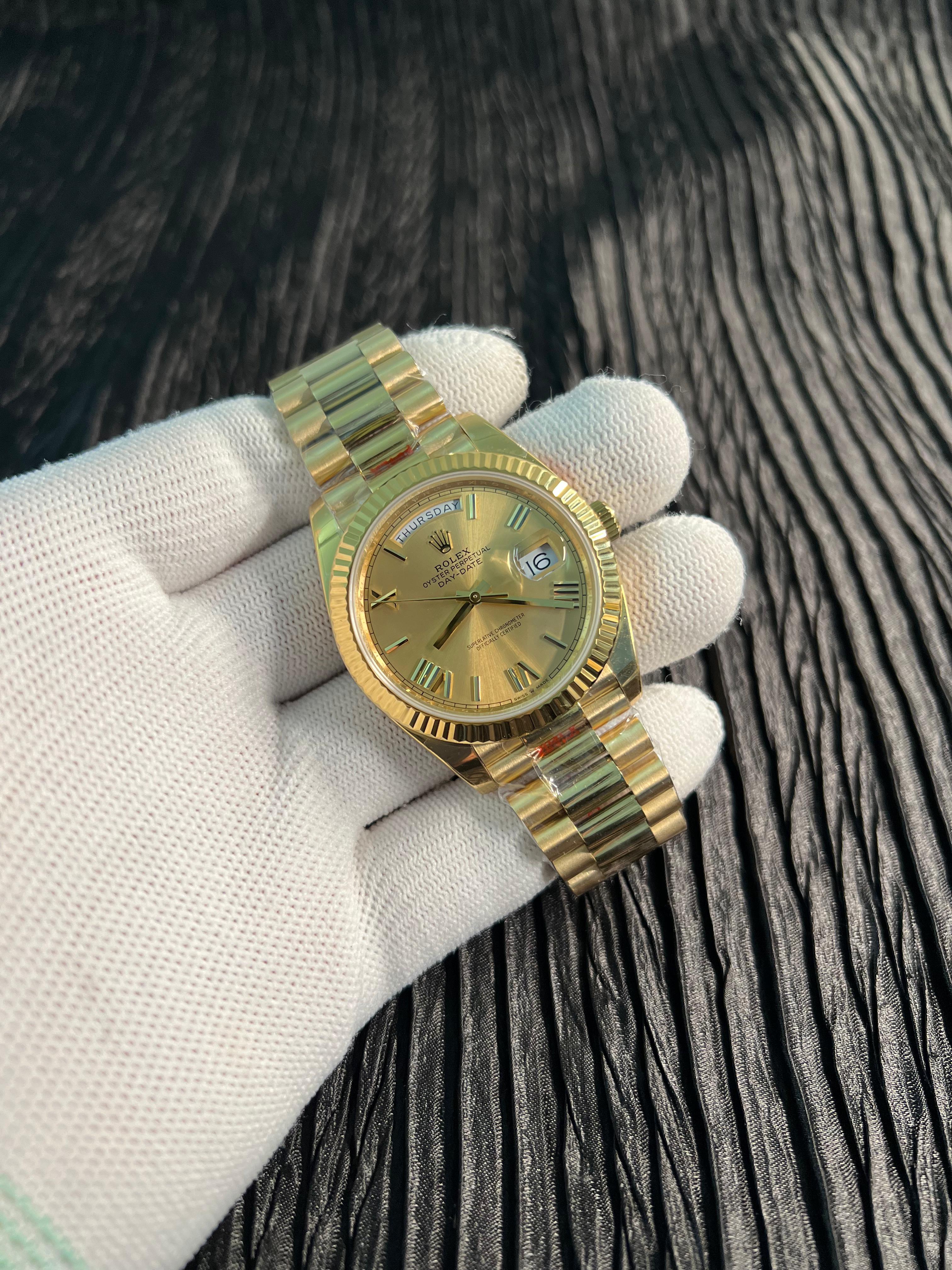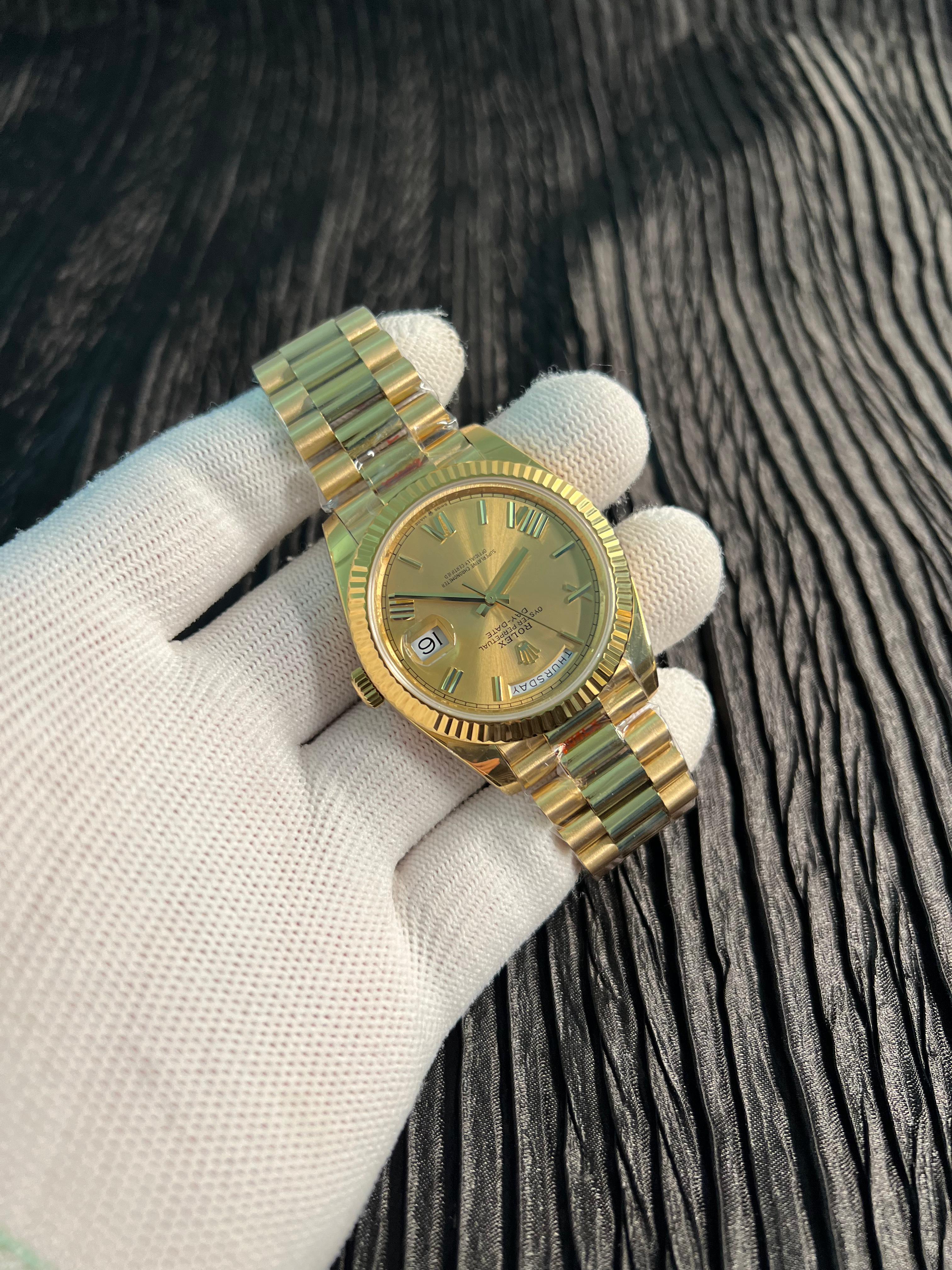Strap: 18K yellow gold plated solid 316L stainless steel president bracelet