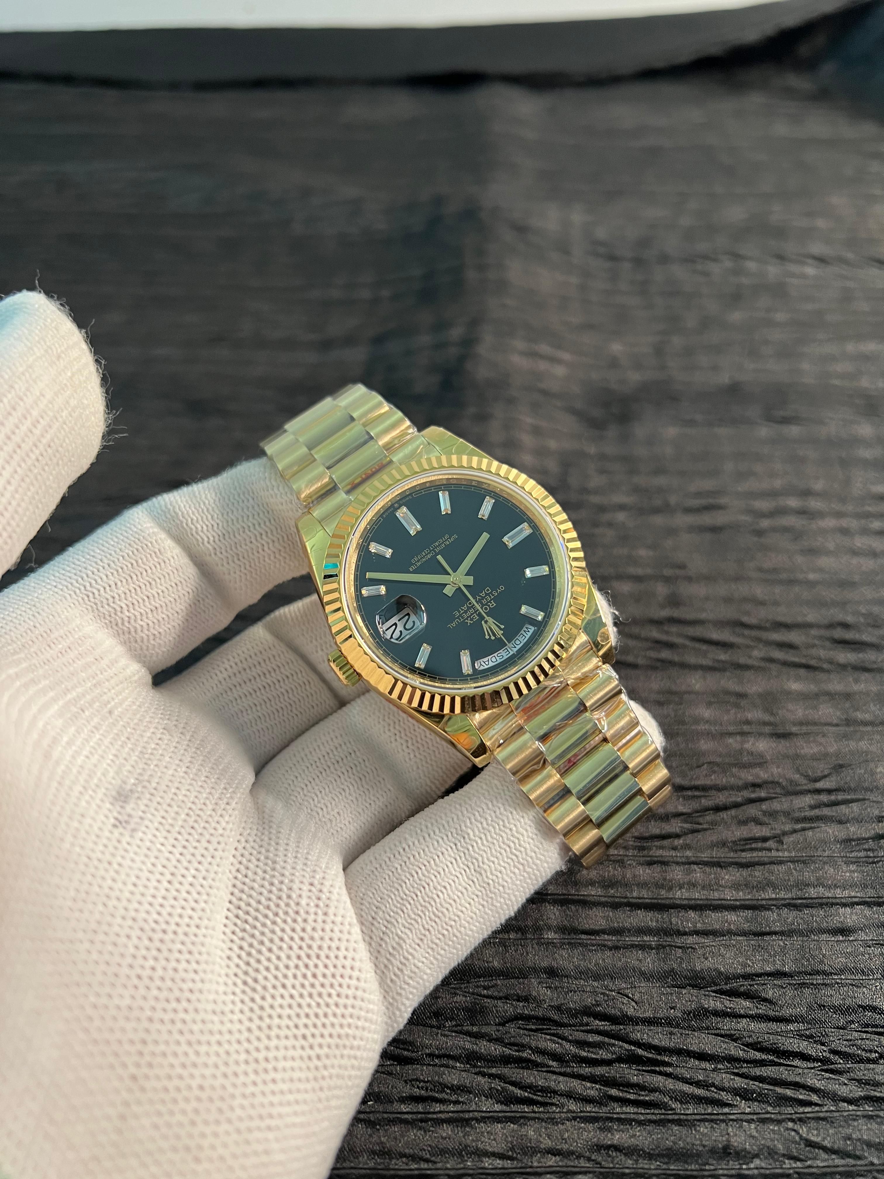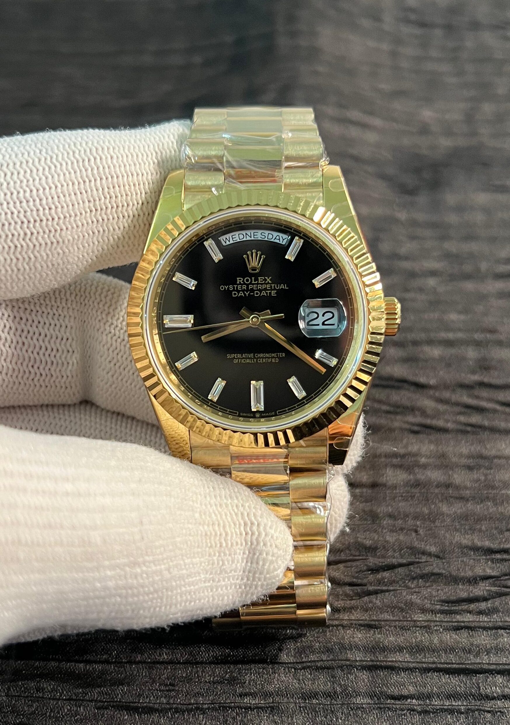 Day Date 228238 40mm Gain Weight V2 QF Best Edition Black Dial T Dia Markers On YG President Bracelet A2836
