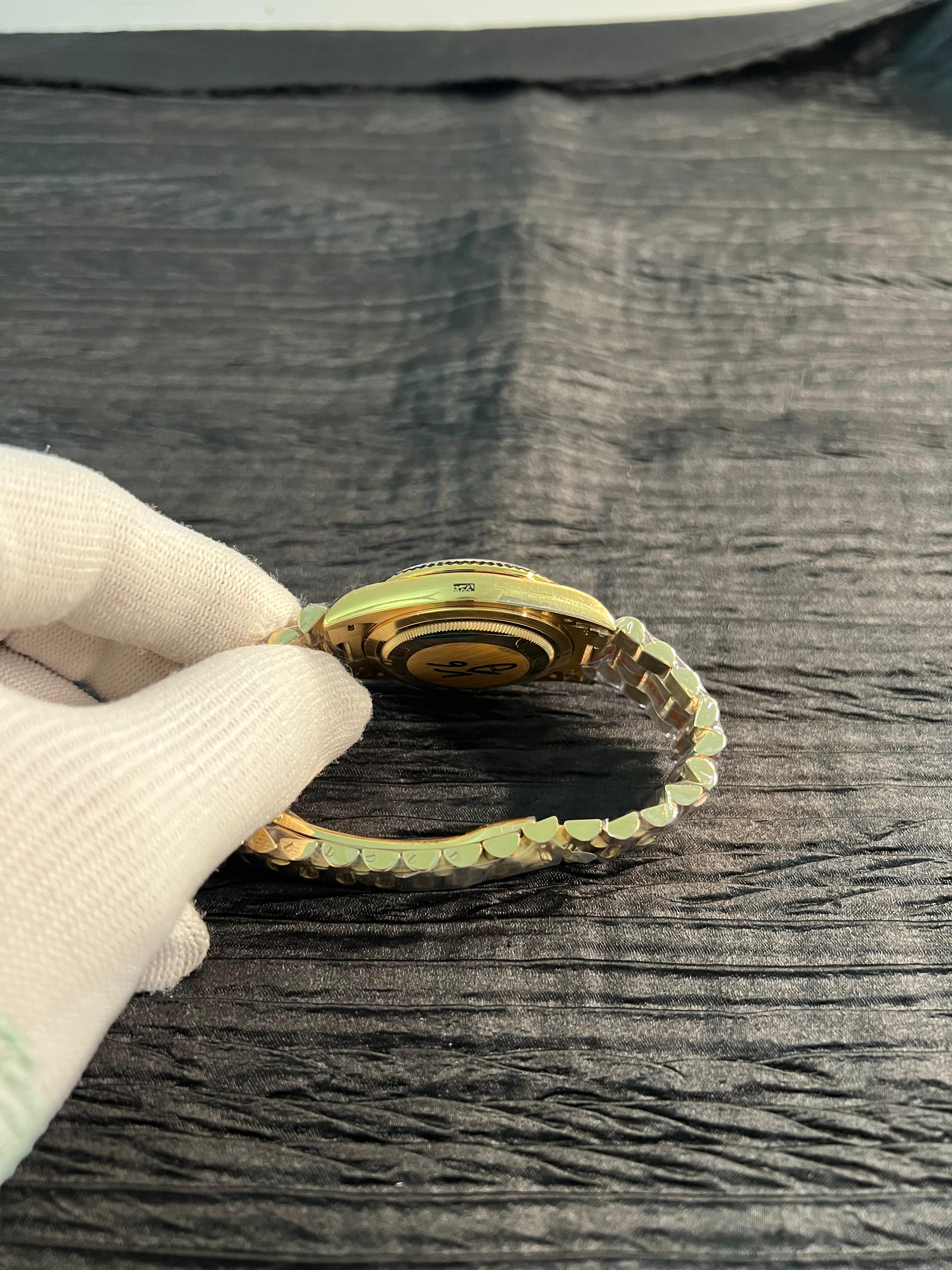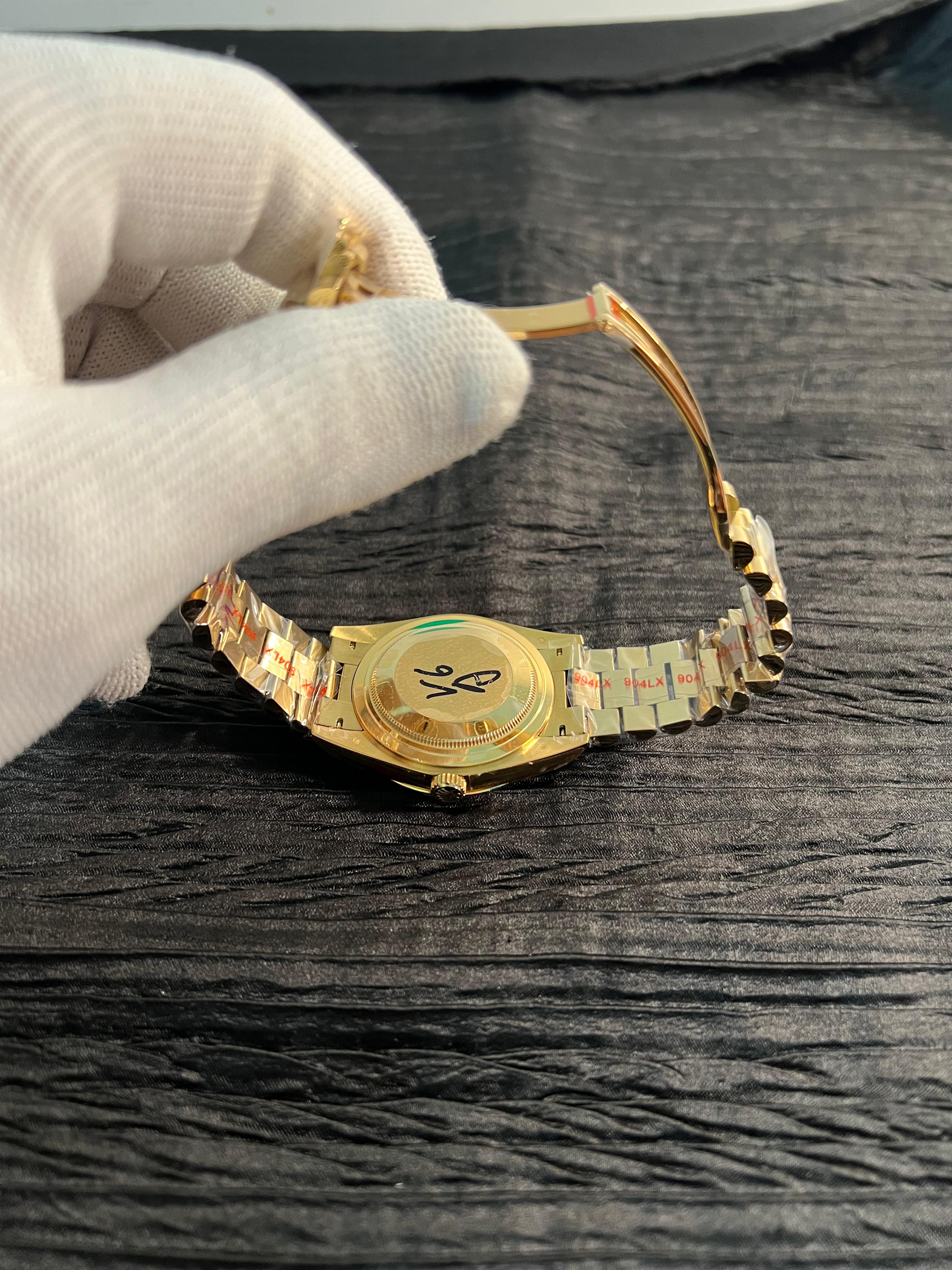Case: 18K yellow gold plated solid 904L stainless steel and Cu-W metal case to increase watch weight to match the genuine gold watch weight