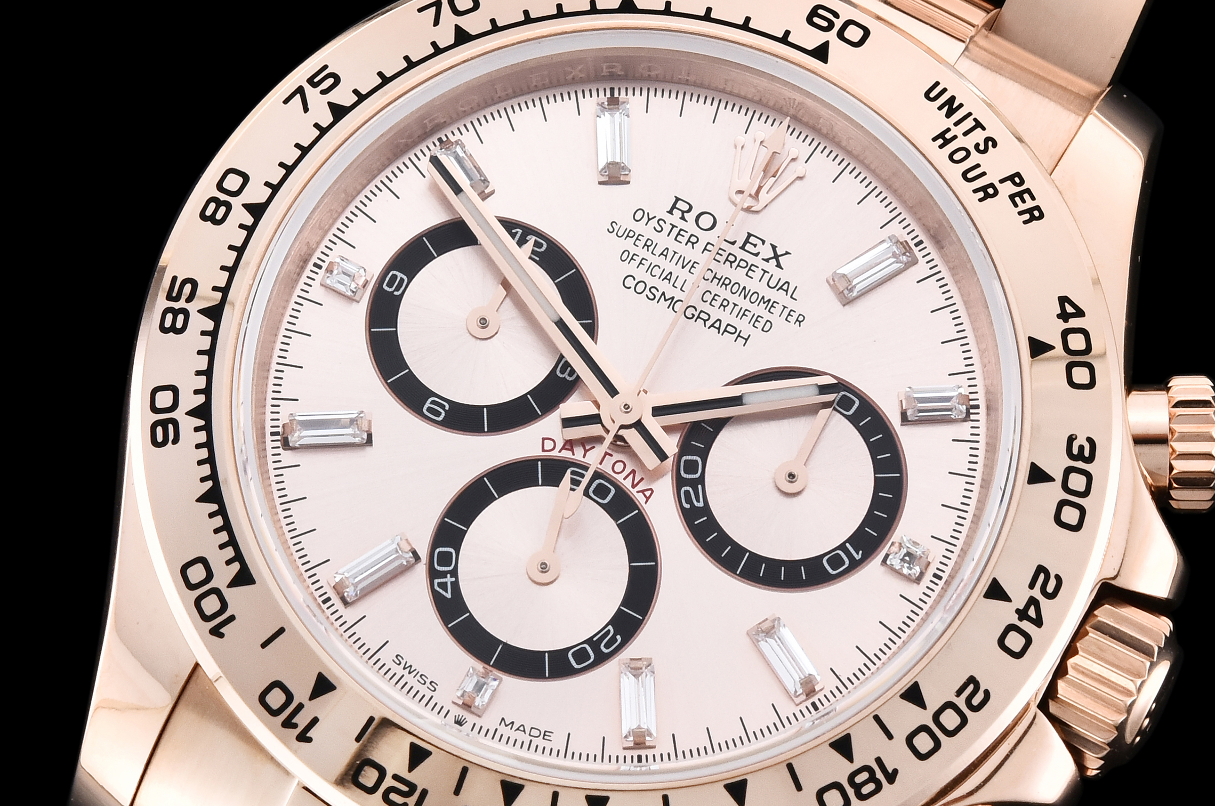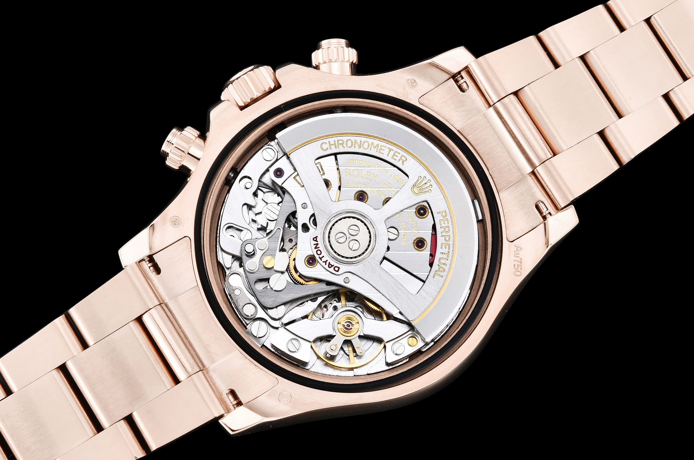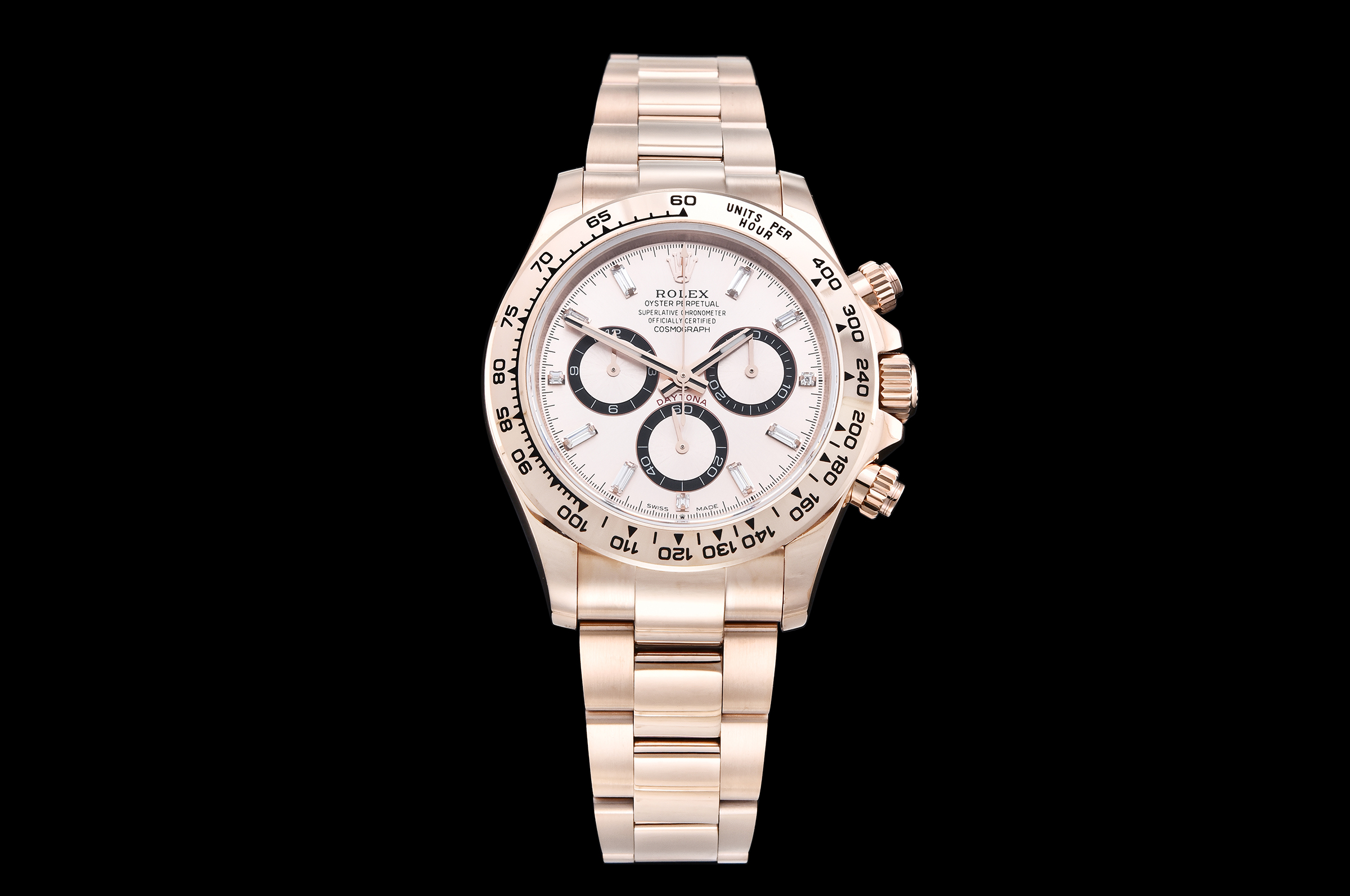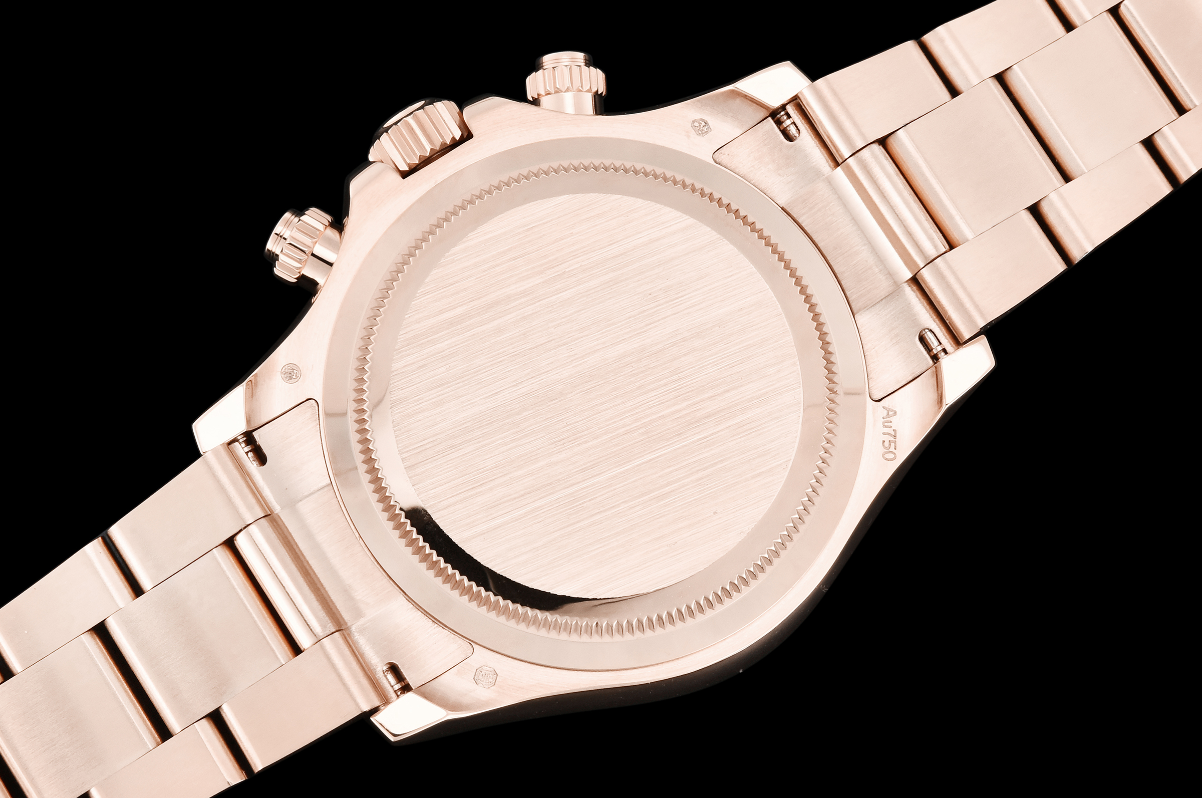 Case: 18k rose gold plated 1:1 replicated solid 904L stainless steel case, Cu-W metal to increase watch weight to match the genuine gold watch weight, almost same weight as genuine watch