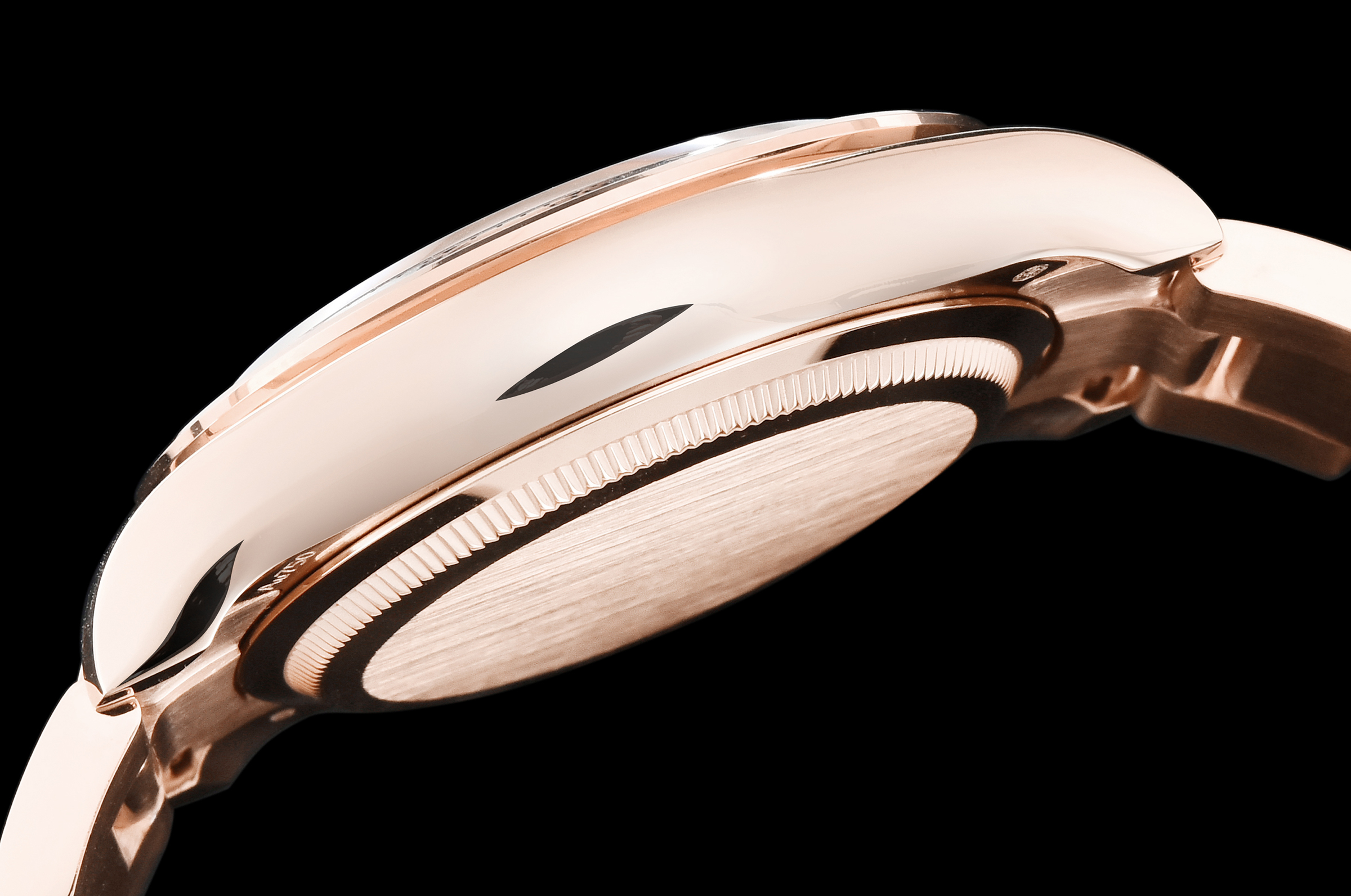 Strap: 18K rose gold plated solid 904 stainless steel bracelet