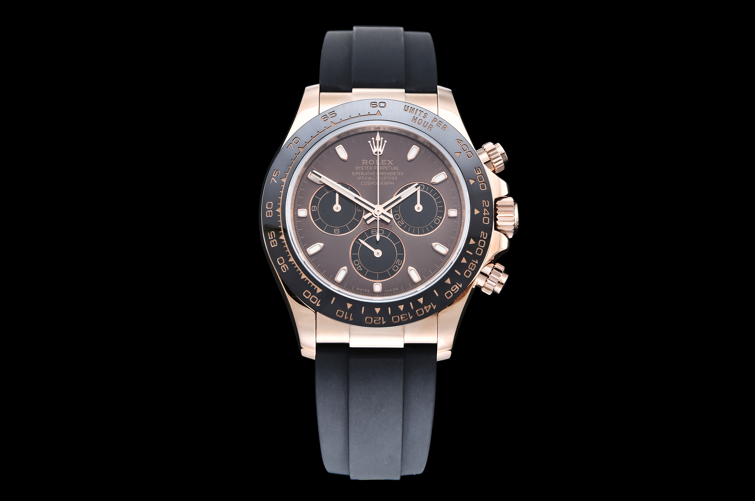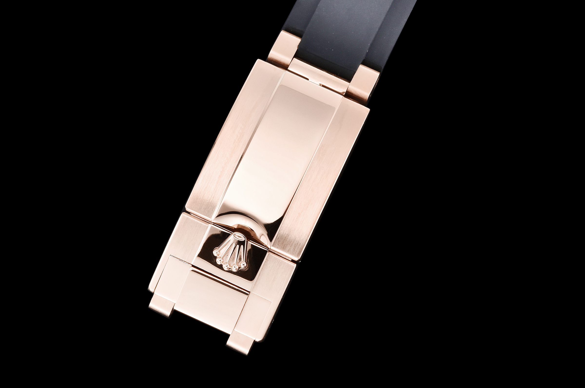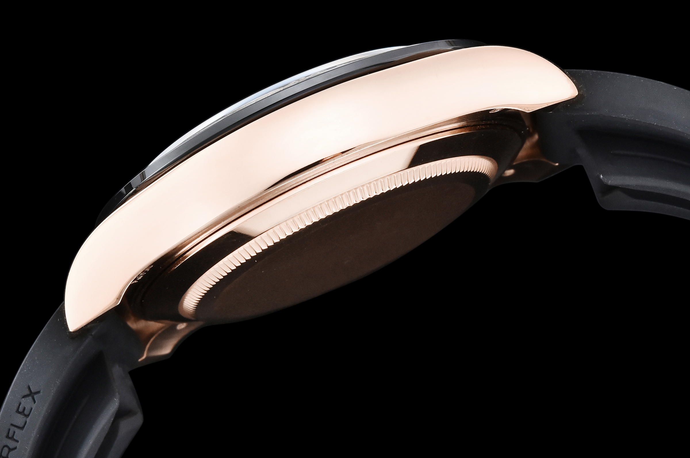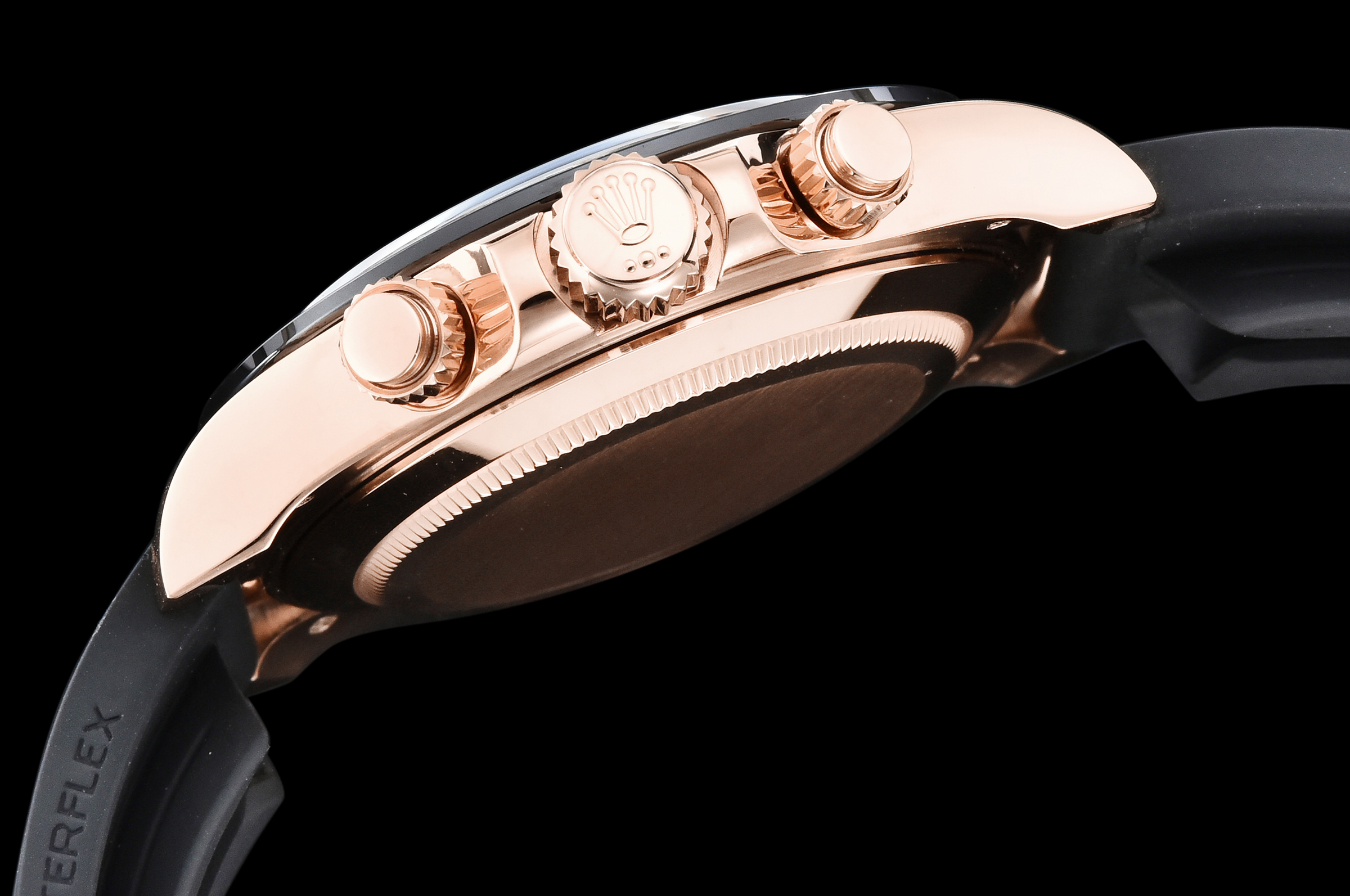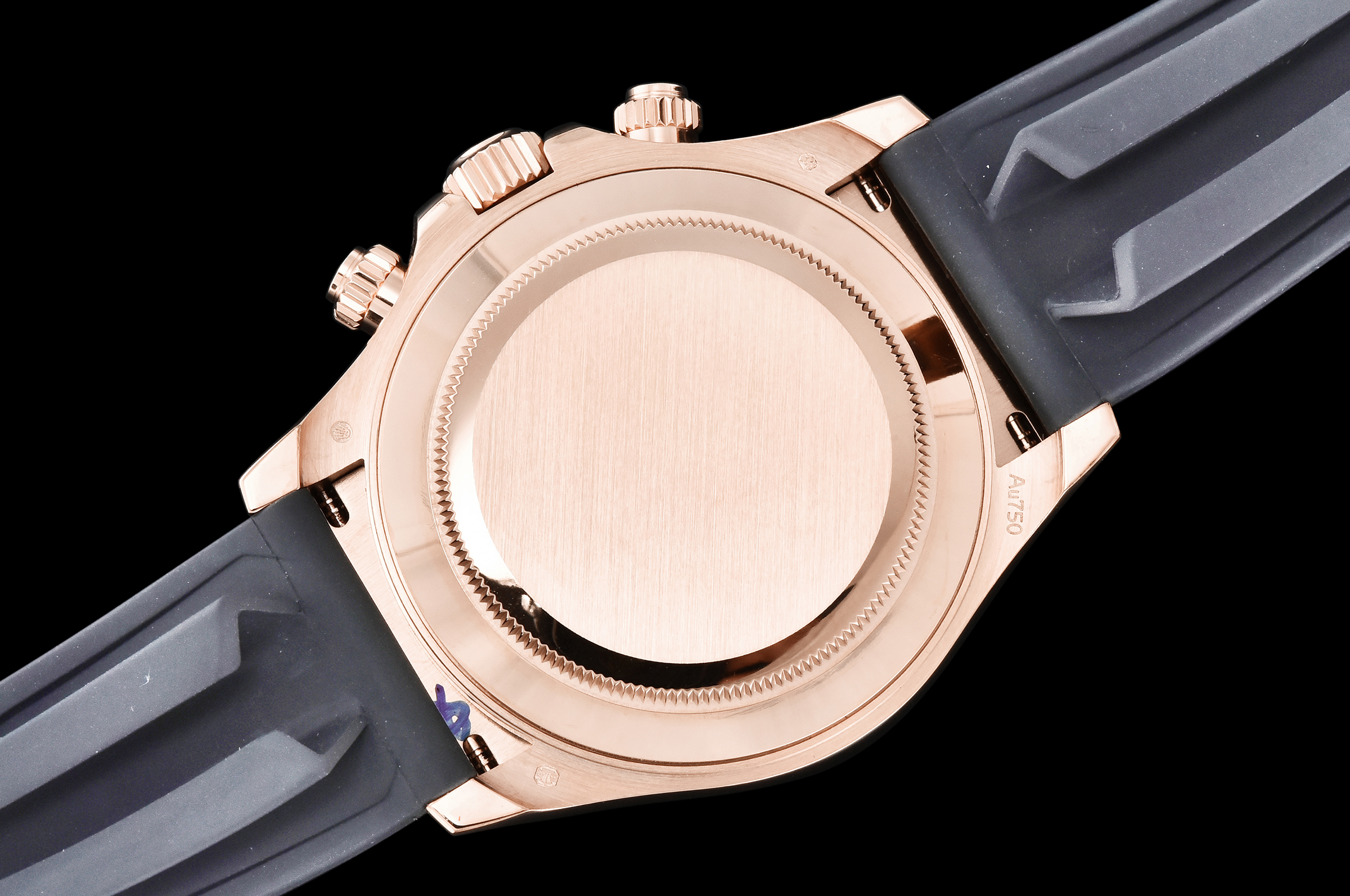 Case: 18k rose gold plated 1:1 replicated solid 904L stainless steel case, Cu-W metal to increase watch weight to match the genuine gold watch weight, almost same weight as genuine watch