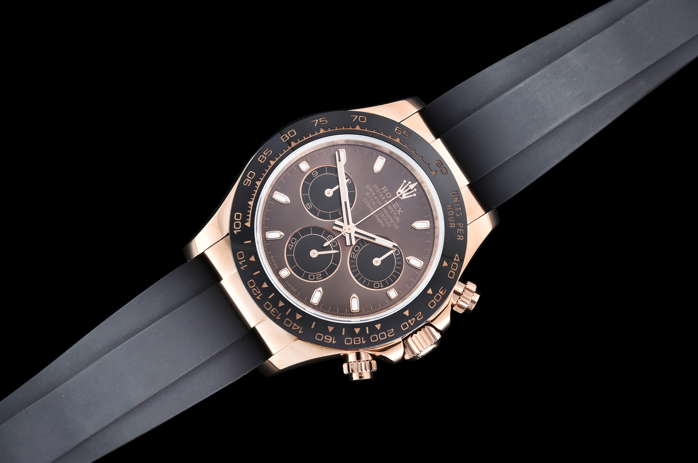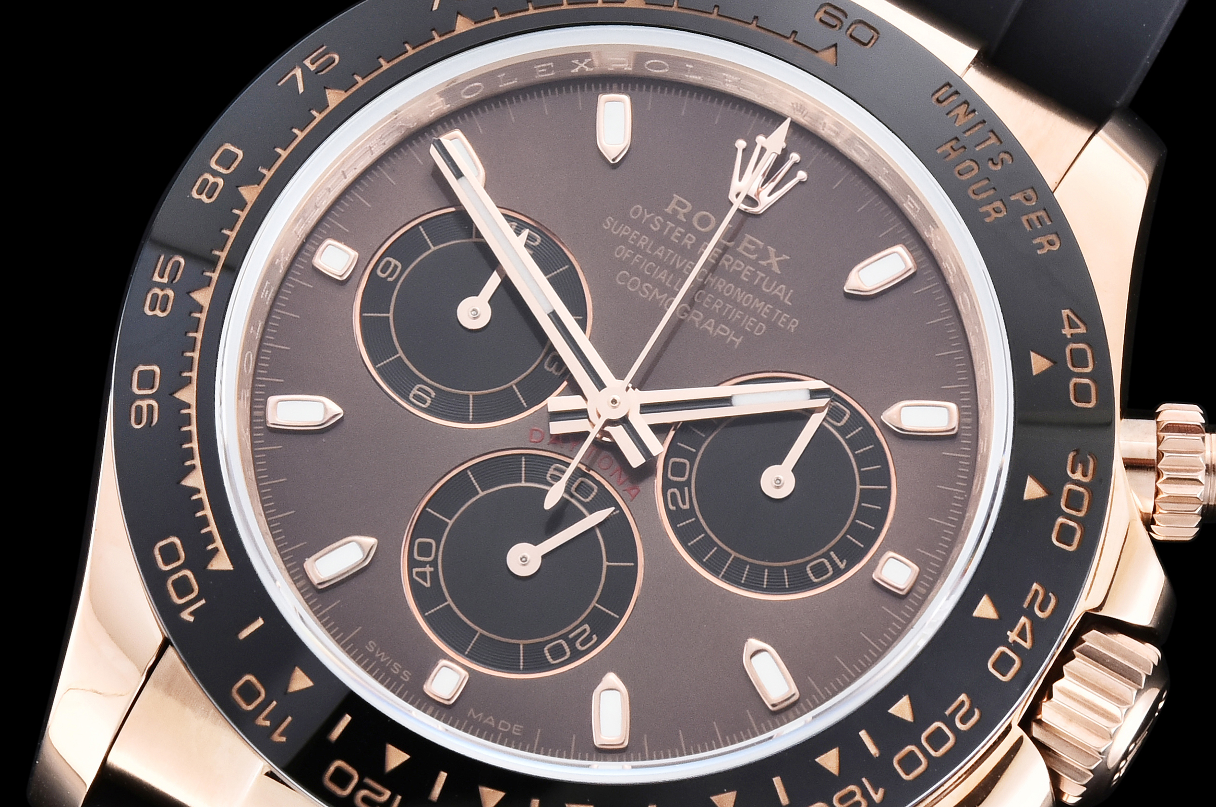 Bezel : Black ceramic tachymeter bezel, real gold plated correct markers, same shape and depth as genuine bezel