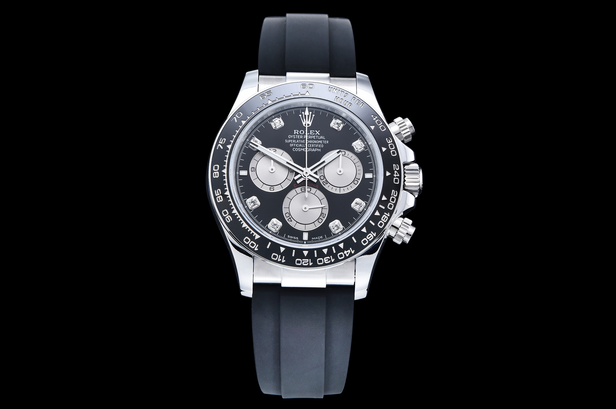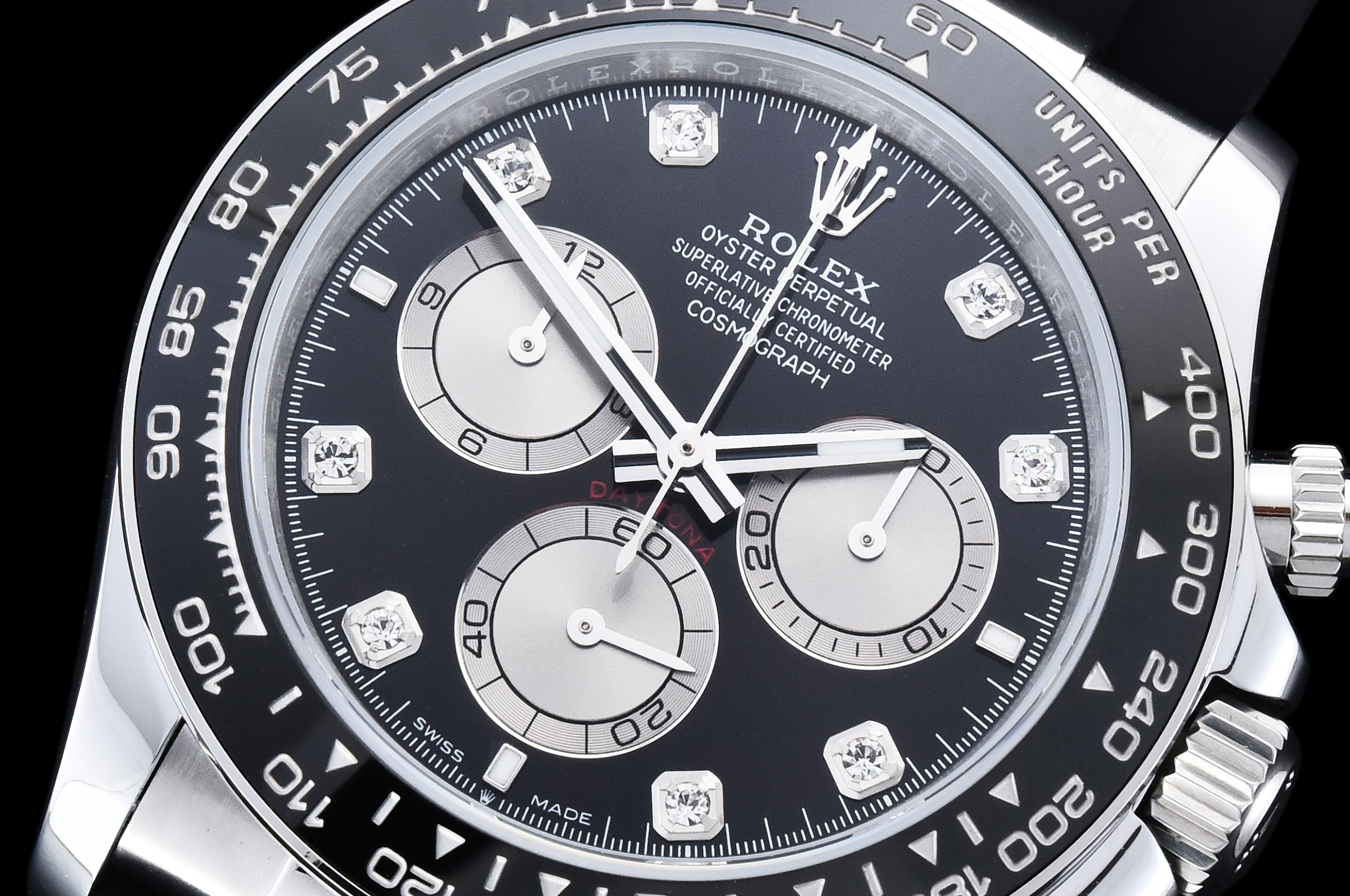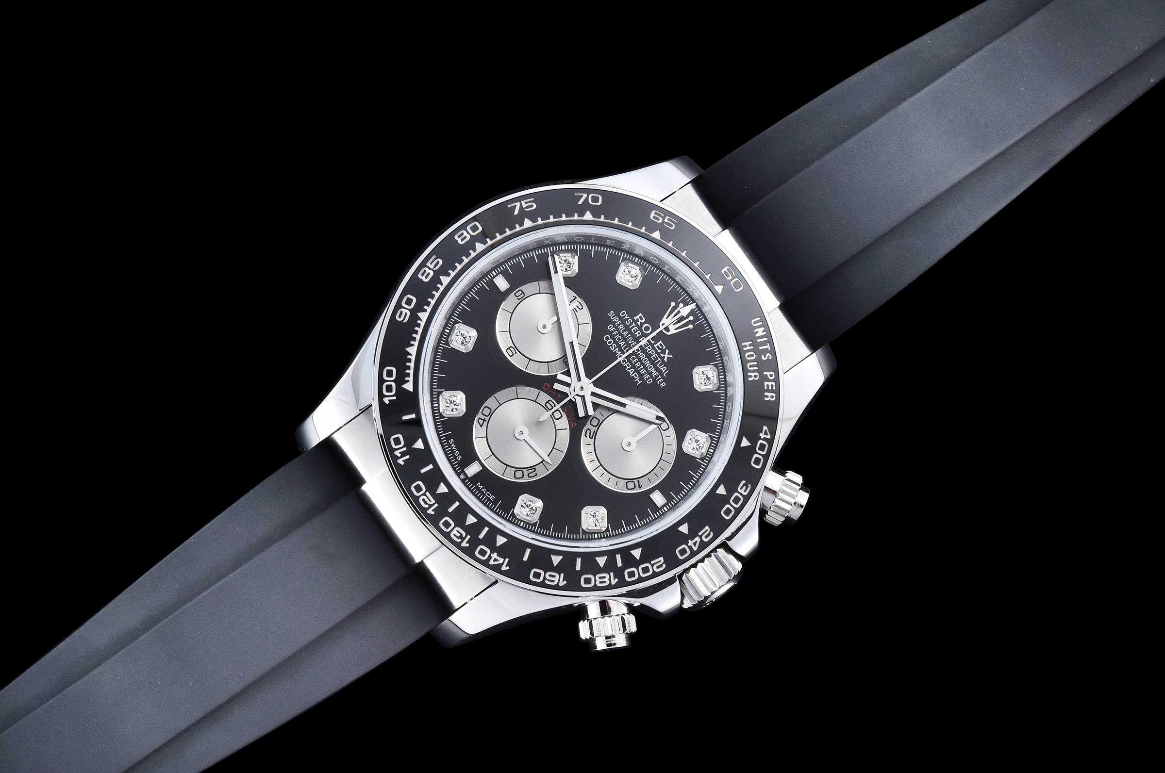 Dial: Black Dial Silver Subdial Diamonds Markers