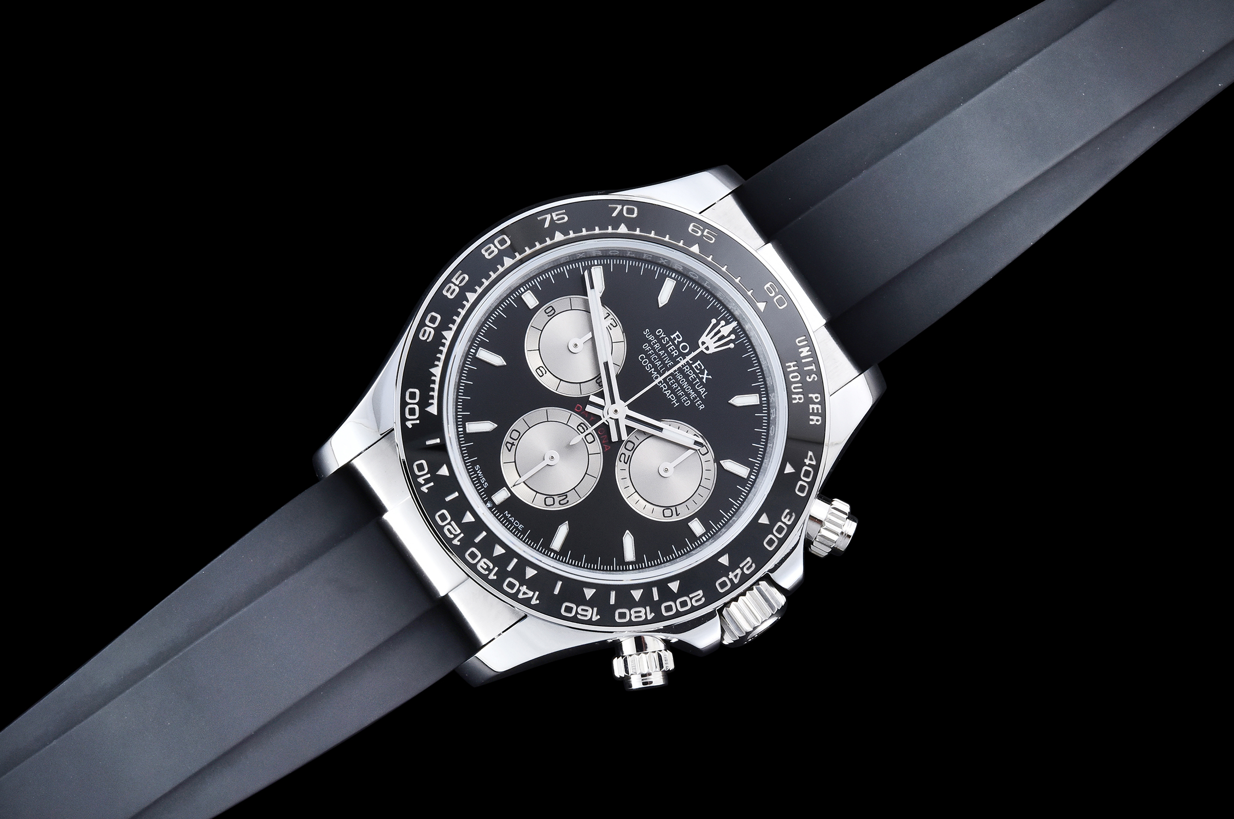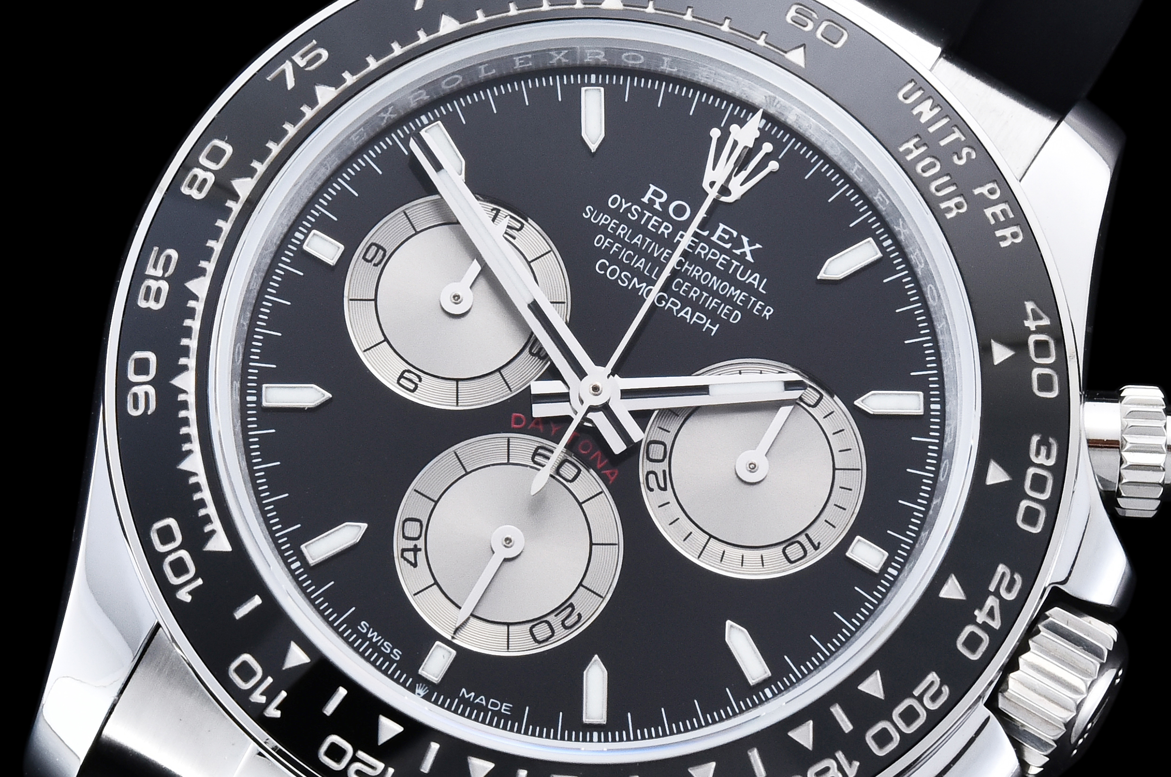 Bezel: Black ceramic tachymeter bezel, real gold plated correct markers, same shape and depth as genuine bezel