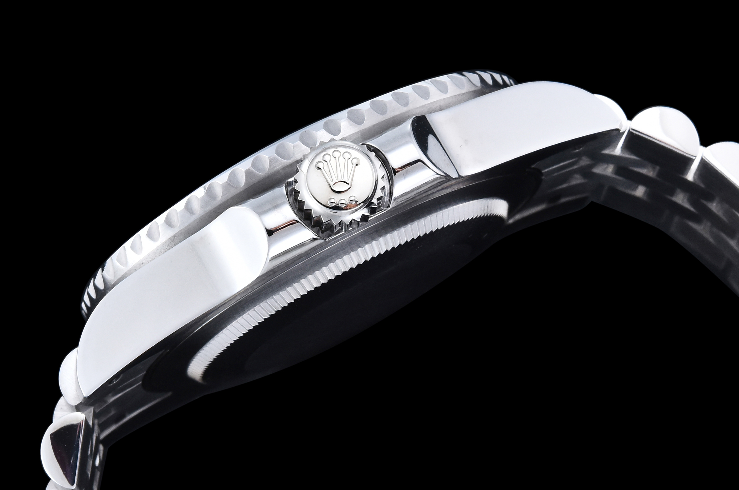 Crystal: Scratch-proof sapphire crystal with semi-invisible crown etched at 6:00 position of the crystal