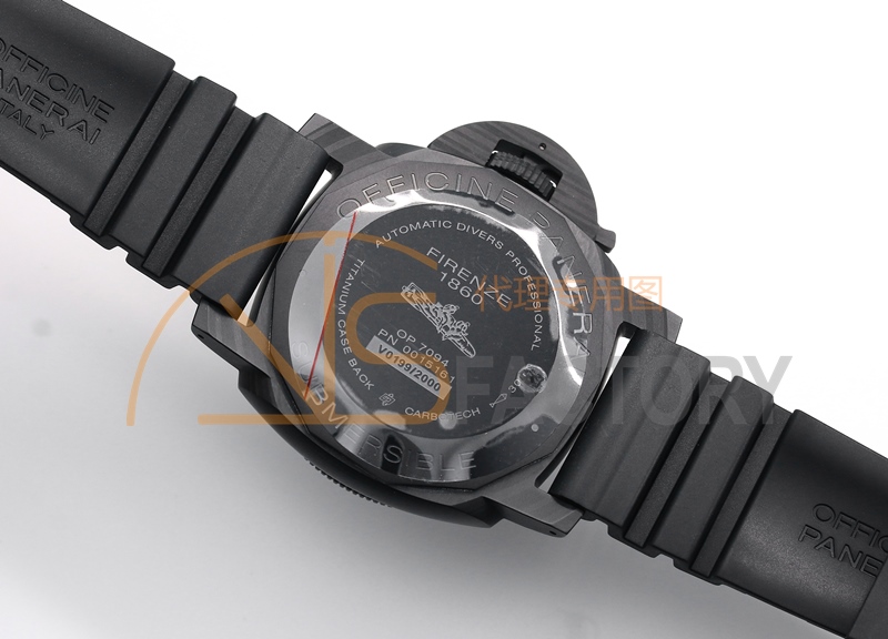 Case: Updated real carbotech Case, Crown Guard, Bezel. Same carbotech as genuine, unique pattern on each case, same material as Panerai Carbotech.