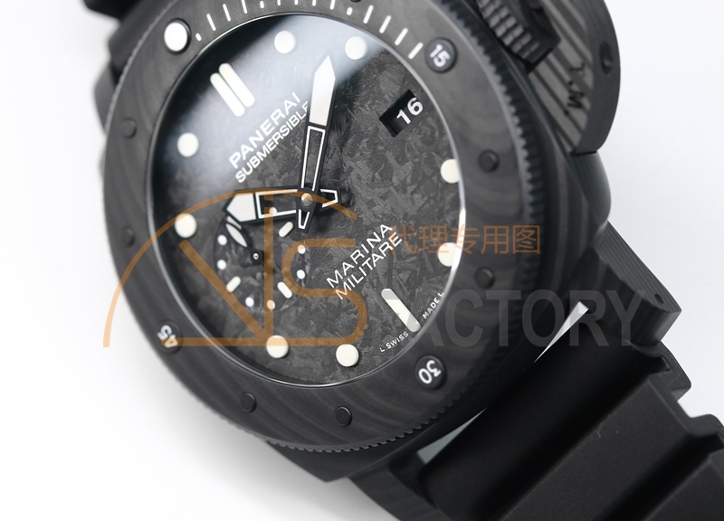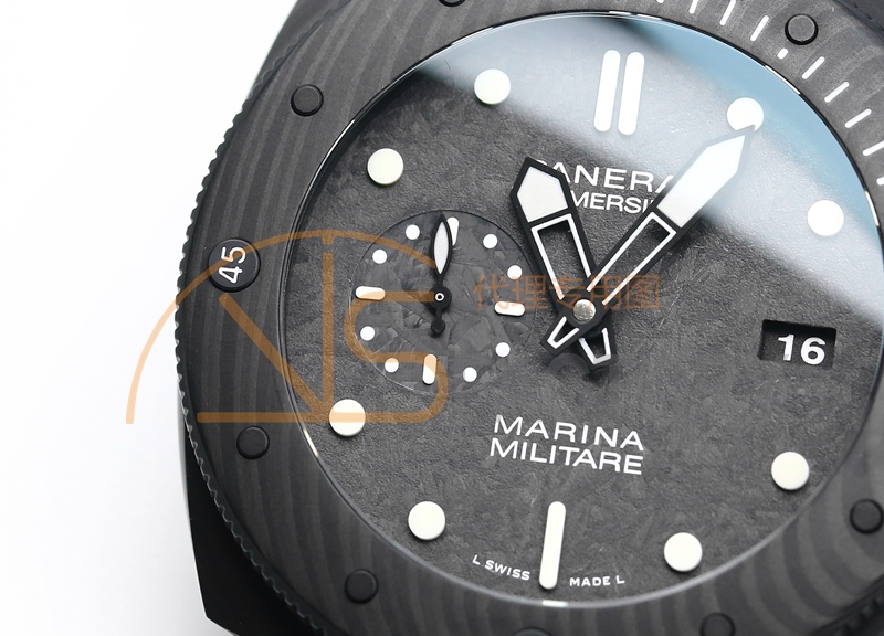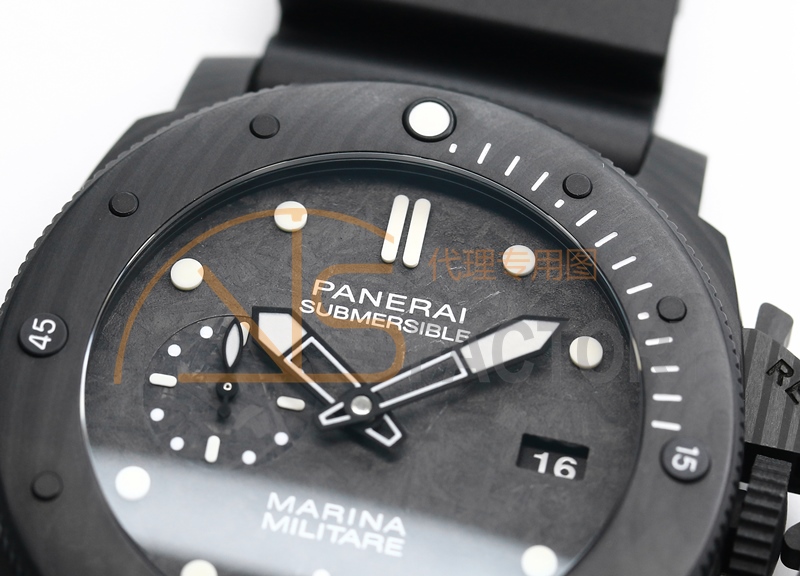 Case: Updated real carbotech Case, Crown Guard, Bezel. Same carbotech as genuine, unique pattern on each case, same material as Panerai Carbotech.