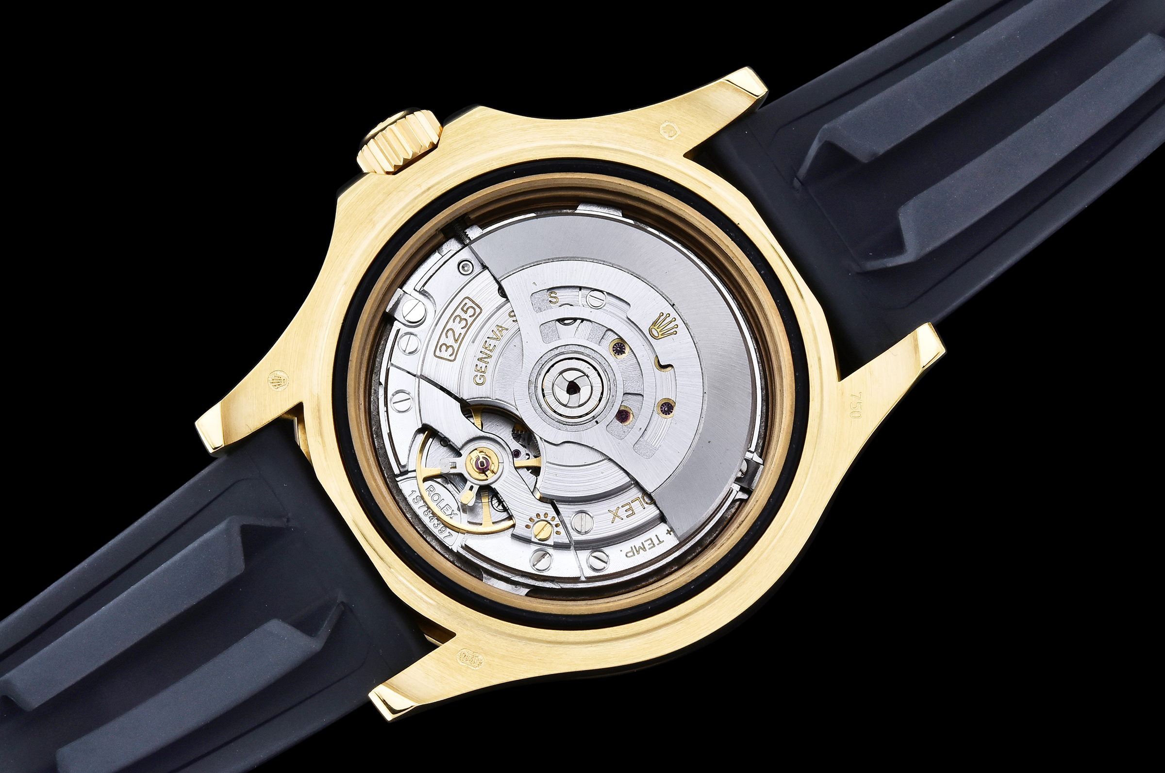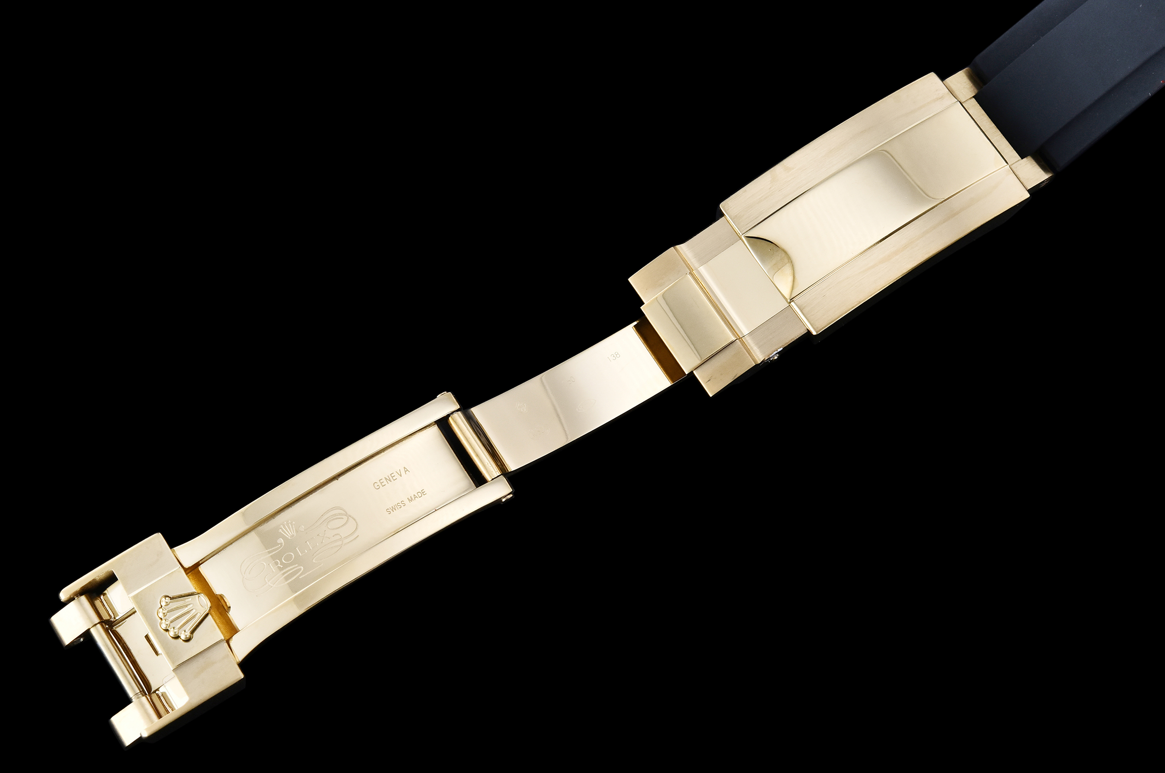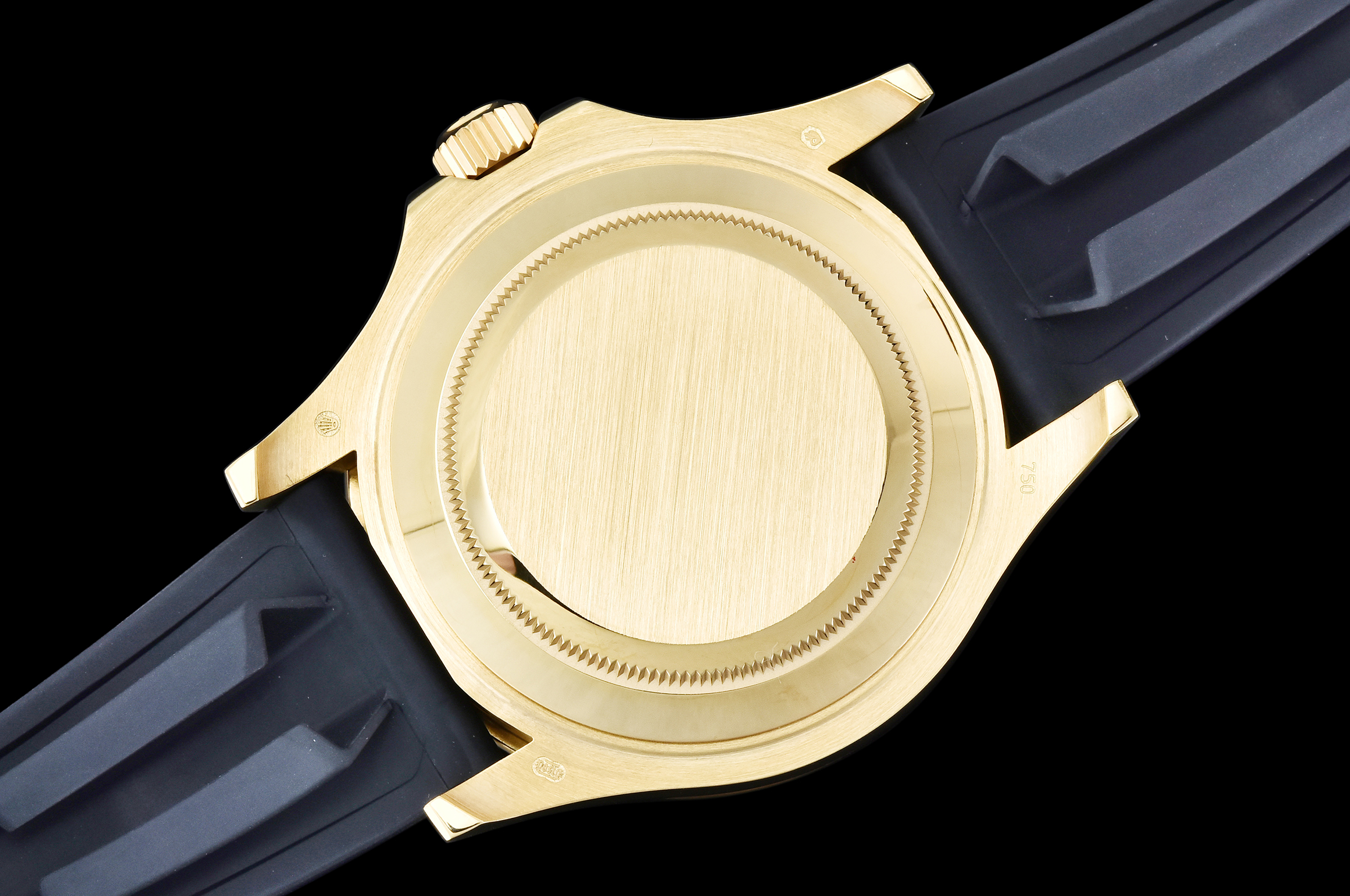 Case: 1:1 replicated 18K yellow gold plated solid 904L stainless steel and Cu-W metal case to increase watch weight to match the genuine gold watch weight