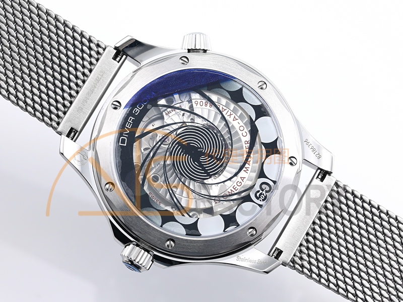 Movement: Asian 2824 automatic movement decorated to Omega 8806 movement, black balance wheel