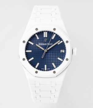 Royal Oak 15500 White Ceramic APSF 1:1 Best Edition Blue Dial On White Ceramic Bracelet SA4302 Super Clone
