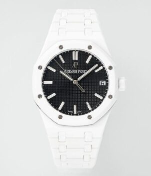 Royal Oak 15500 White Ceramic APSF 1:1 Best Edition Black Dial On White Ceramic Bracelet SA4302 Super Clone