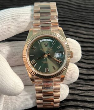 Day Date 128238 Gain Weight RG QF 1:1 Best Edition Green Dial Roman Markers on RG President Bracelet