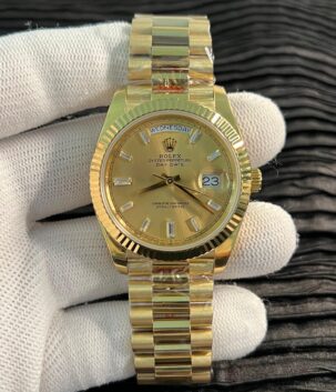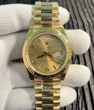 Day Date 128238 Gain Weight YG QF 1:1 Best Edition Gold Dial Roman Markers on YG President Bracelet