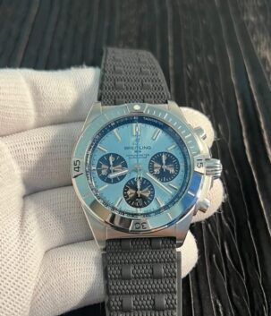 Chronomat B01 44mm SS BLSF 1:1 Best Edition Ice Blue Dial on Black Rubber Strap A7750 to Cal.01