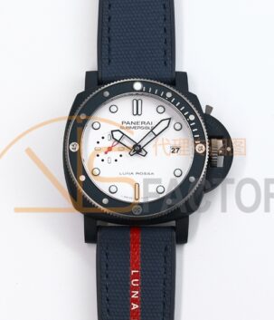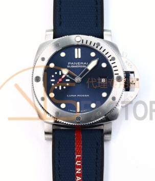 PAM 1543 Luna Rossa Submersible 44mm Ceramic VSF 1:1 Best Edition White Dial On Blue Fabric Strap P900