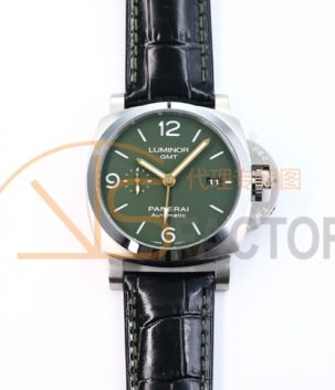 PAM1056 V GMT VSF 1:1 Best Edition Green Dial on Black Leather Strap P.9011 Super Clone